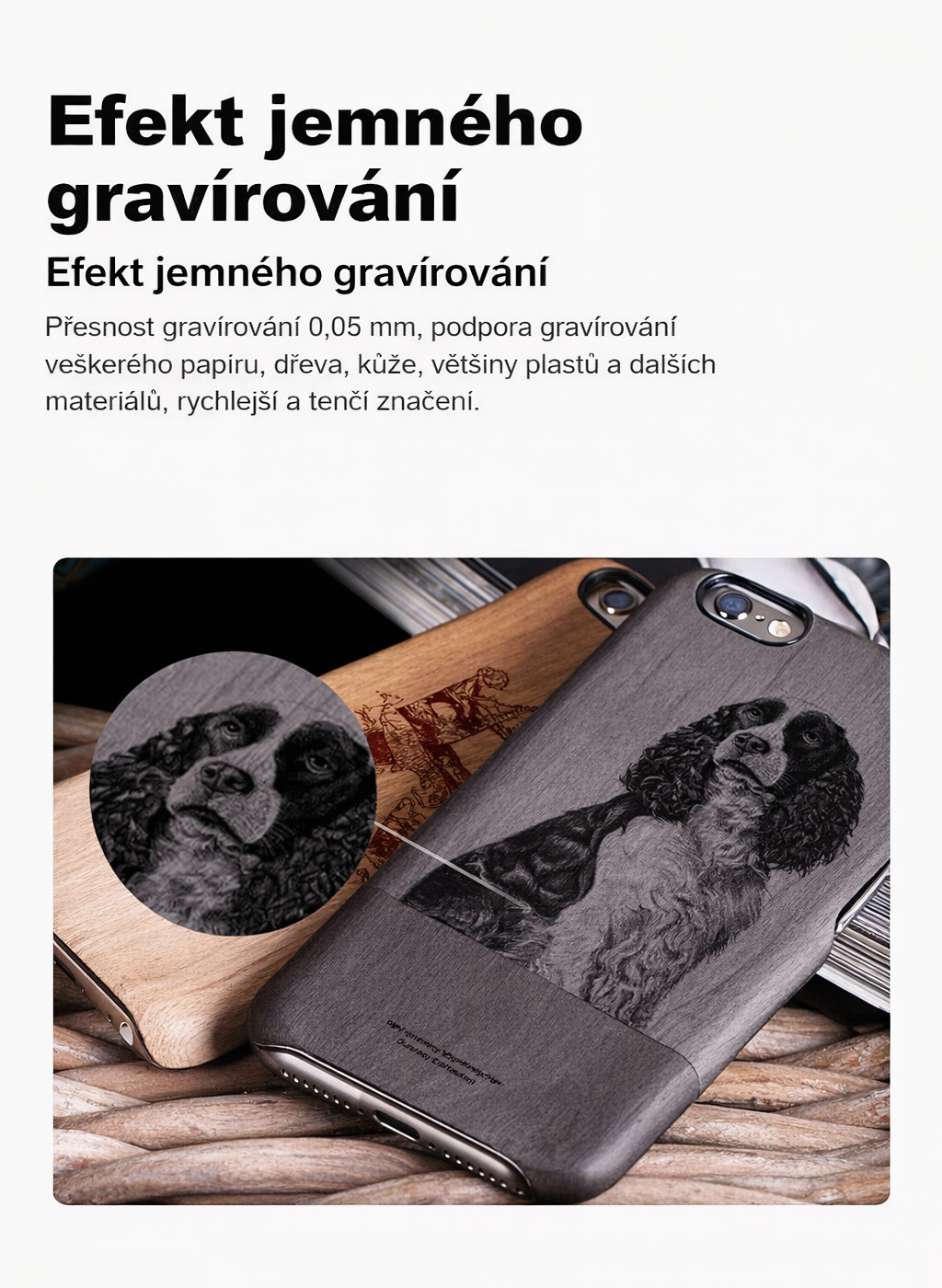„Proč se spokojit s rozmazanými rytinami? Zatímco standardní stroje se potýkají s jemnými liniemi, CRAVIO posouvá hranice s podporou rozlišení 8K. Jak je vidět ve srovnání, náš laser zachycuje každý jednotlivý vous a texturu srsti s dechberoucí jasností. Není to jen gravírování; je to fotorealistické umění na jakémkoli povrchu.“