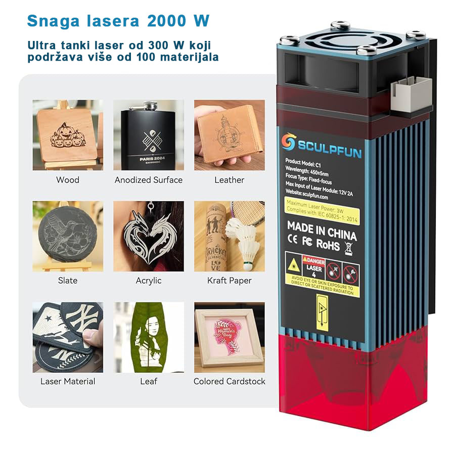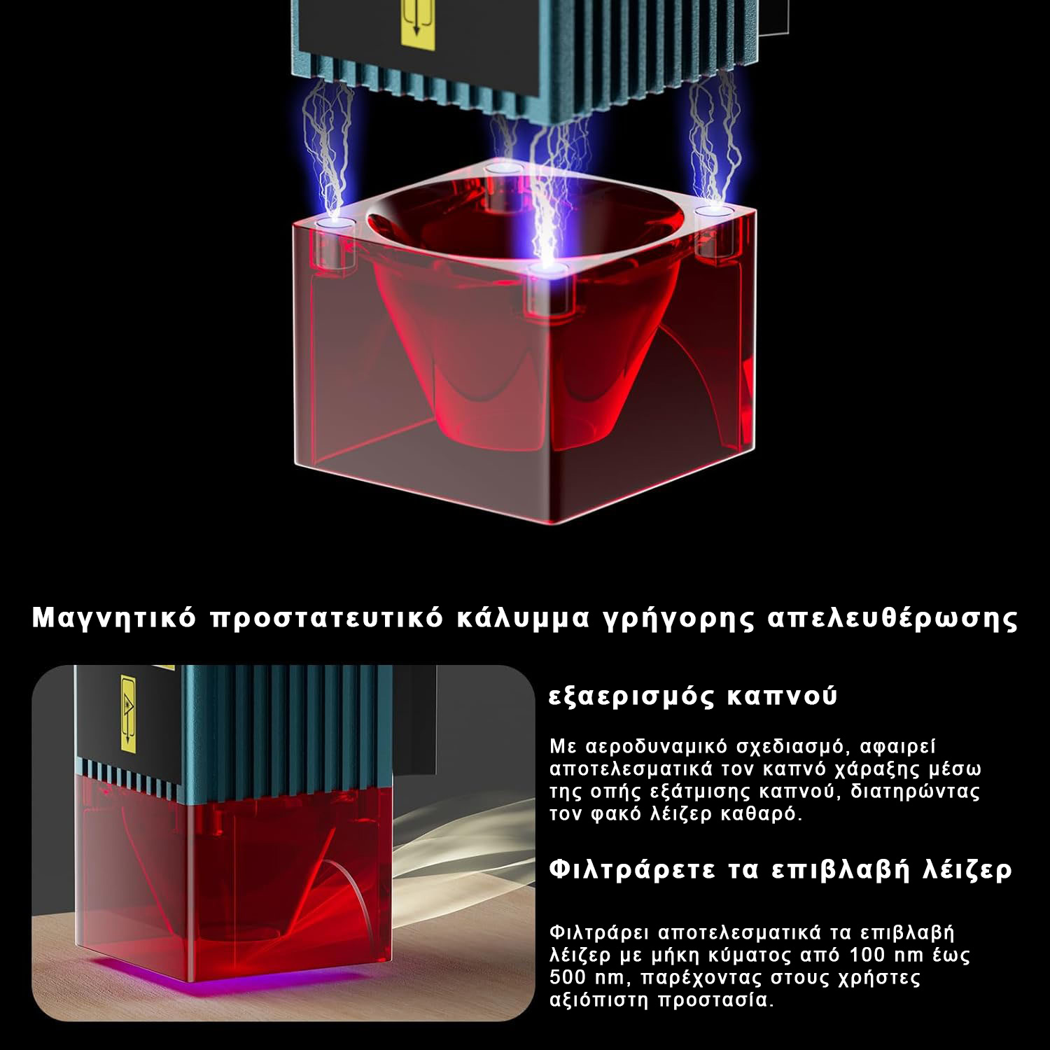 Υποστηρίζει χάραξη σε ένα ευρύ φάσμα υλικών, όπως μέταλλο, δέρμα, πλαστικό, γυαλί, ύφασμα και χαρτί. Το λέιζερ 0,04 mm μπορεί να χαράξει οποιοδήποτε υλικό.